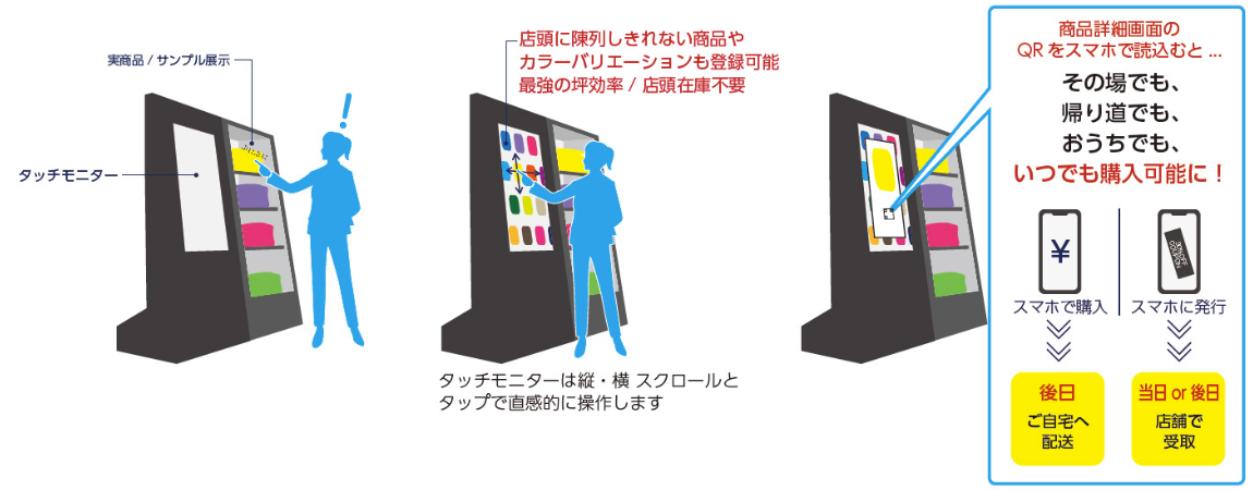 人手やコストを削減しながら、「顧客との商品の関係を深める場」 として進化を遂げた省人・省力化の販売ソリューションです。