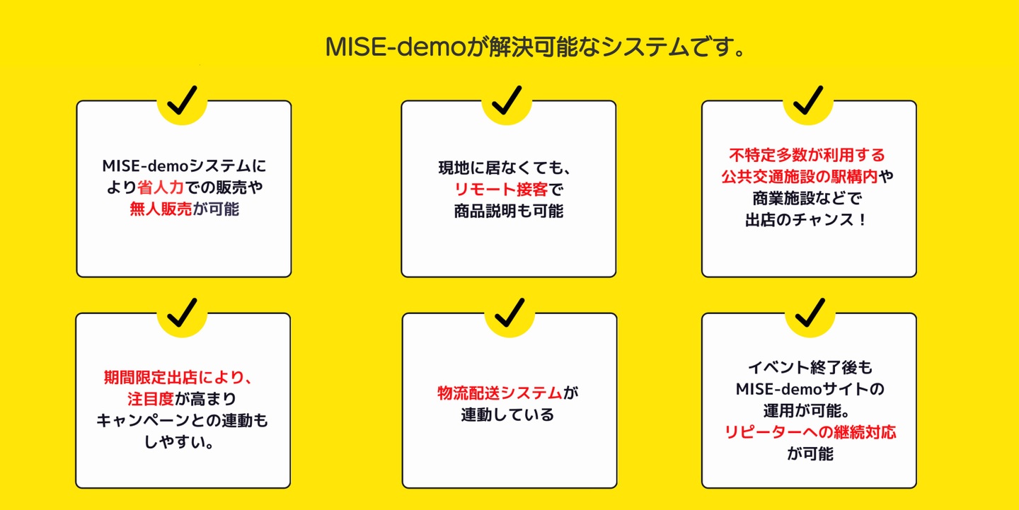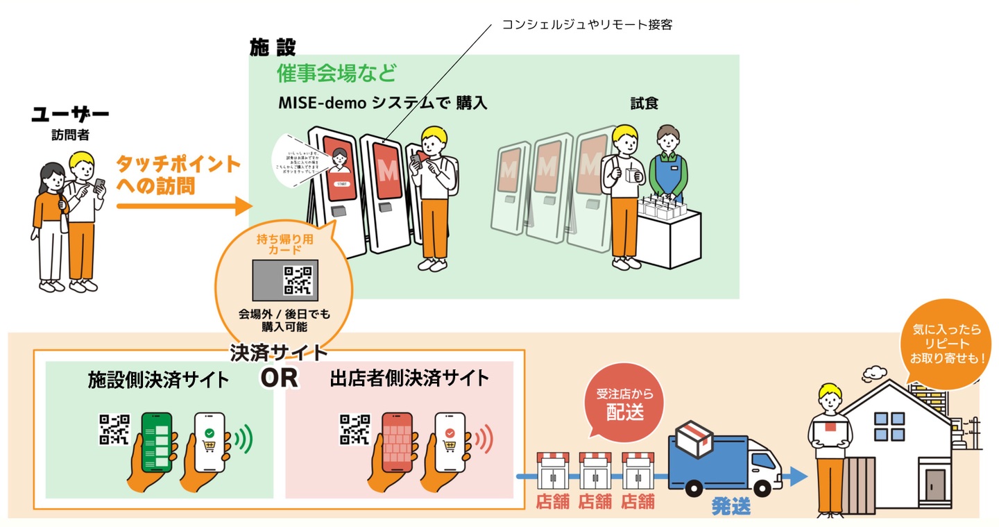 接客』と『決済』をデジタルを活用した次世代販売システム『MISE-demo』で展開します。従来の小売業の手法から一歩進んだ効率的な販売モデルで販売することが可能です。