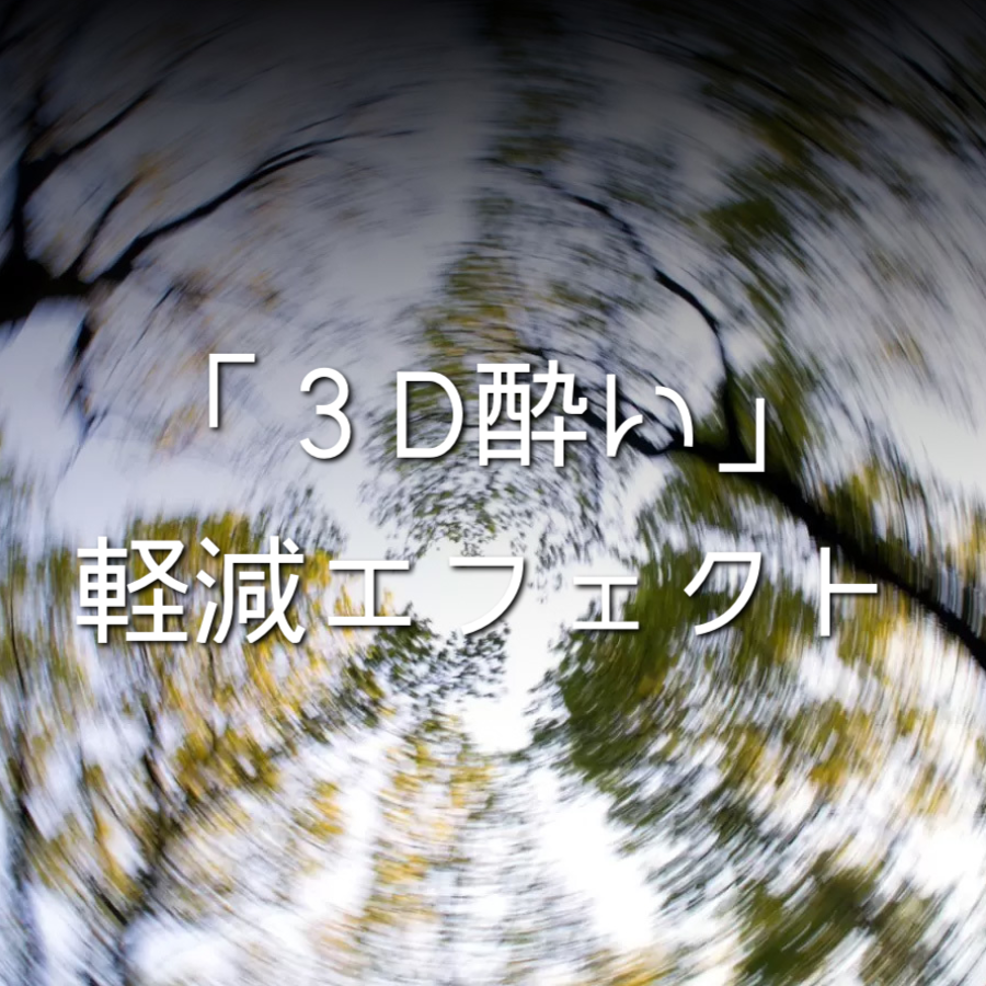 視覚からの情報に対し、実際に体に起こる刺激の動きが感じられないことから、脳が混乱し、不快な状態と判断することで「3D酔い」を軽減するエフェクト手法を導入
